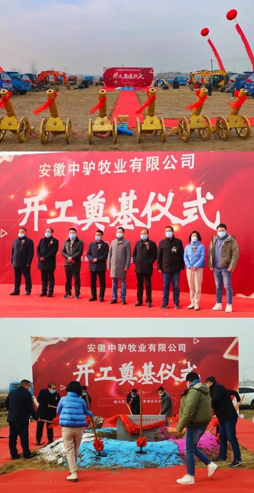 1月15日上午9時(shí),匯鑫集團(tuán)旗下,安徽中驢牧業(yè)毛驢產(chǎn)業(yè)園開(kāi)工建設(shè)奠基儀式在潁上縣黃橋鎮(zhèn)舉行。潁上縣農(nóng)村農(nóng)業(yè)局局長(zhǎng)王寅,匯鑫集團(tuán)董事長(zhǎng)程學(xué)勇,黃橋鎮(zhèn)黨委書(shū)記劉國(guó)東、鎮(zhèn)長(zhǎng)王卓,匯鑫集團(tuán)副總經(jīng)理王坤,中驢牧業(yè)總經(jīng)理張青等領(lǐng)導(dǎo)出席開(kāi)工奠基儀式。